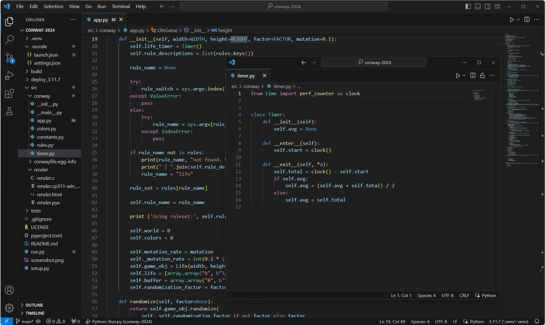 Figure 9. Documents can be viewed in tabs or spun off into their own detached windows (as with timer.py). Those windows can also be merged back into the main window by simply dragging and dropping.